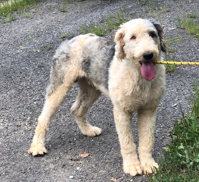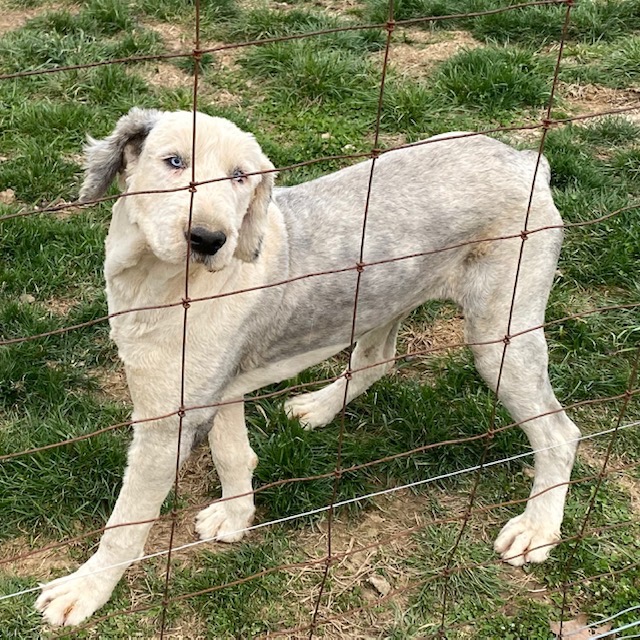 Ahhh. Our wonderful, silly and handsome Yoggi below. DOB 3/12/2010. Yoggi was the first AKC Old English Sheepdog to join our family for the start of our Sheepadoodle program. He came to us as a furry little ornery puppy. Although raised in our home, he yearned to join the pack. He is a happy guy, and extremely affectionate. He is still living his years out with us following his retirement and neutering in 2016. OFA Hips, Elbows, Cardiac, Patellar