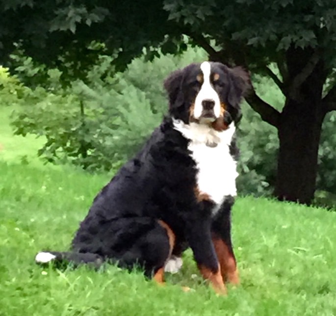 Bosley. Our very first and only AKC Bernese Mountain Dog. Bosley lives with my brother and his family in South Carolina. It is unlikely we will be breeding with Bosley again. Enjoy your retirement with your son, Bixby (Great Mountainees)!