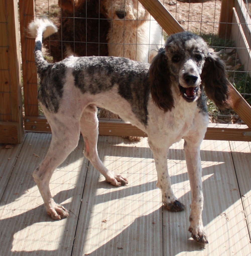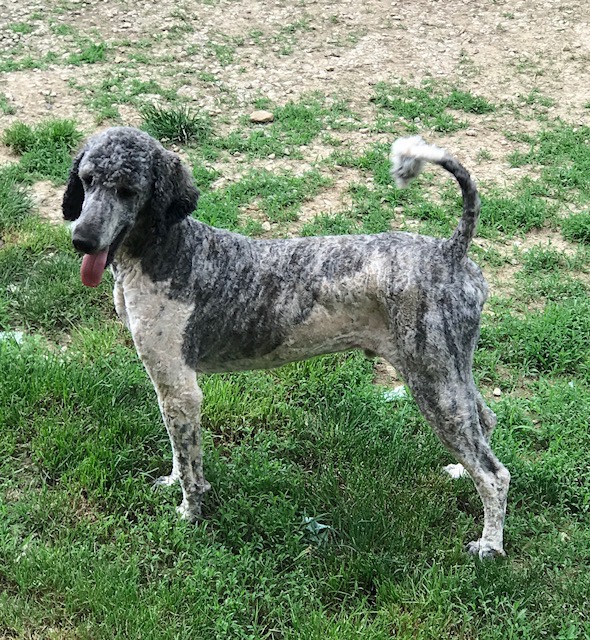 Meet Doc, AKC Standard Poodle. DOB 10/14/2015. I stumbled upon Doc while still grieving our one and only Parti Standard Poodle boy remaining in our program. After researching and correspondence with his current owner (also a fellow breeder), we decided Doc would help to fill a hole in our program left by our sudden loss of Stoney. Doc is OFA Good and clear, DNA Clearances and fully vetted. He’s also a proven stud of wonderful puppies. He’s an all around great guy! We are very grateful and blessed to have brought Doc to join our pack. He fit right in immediately!