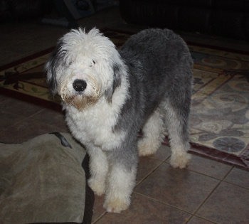 Our Handsome Geno! Our male AKC Old English Sheepdog. DOB 8/19/2012. We picked Geno for his unique markings. Geno joined our family as a puppy and has been raised with us. OFA Hips Good, Elbows, Cardiac, Patellar Clear!