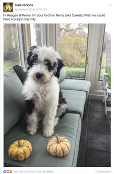 Sheepadoodle sending a shout out to his brother at the trainer’s.